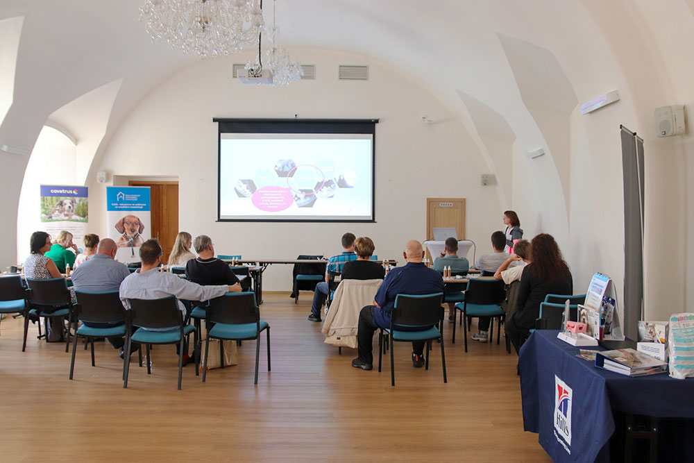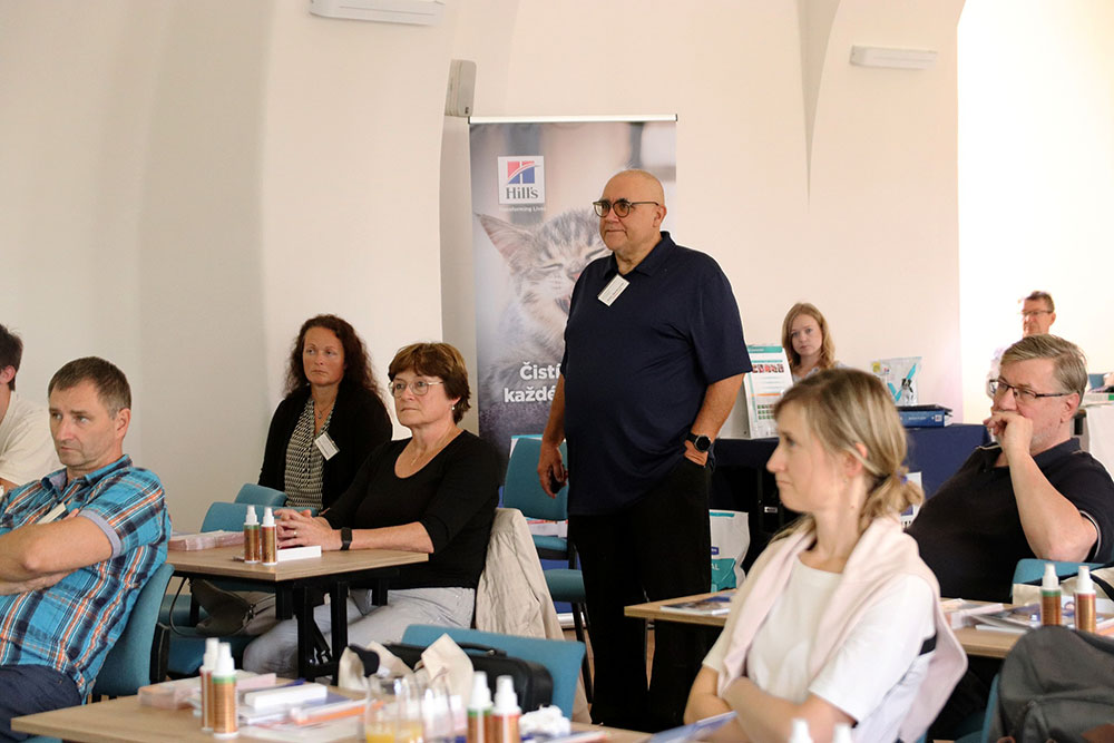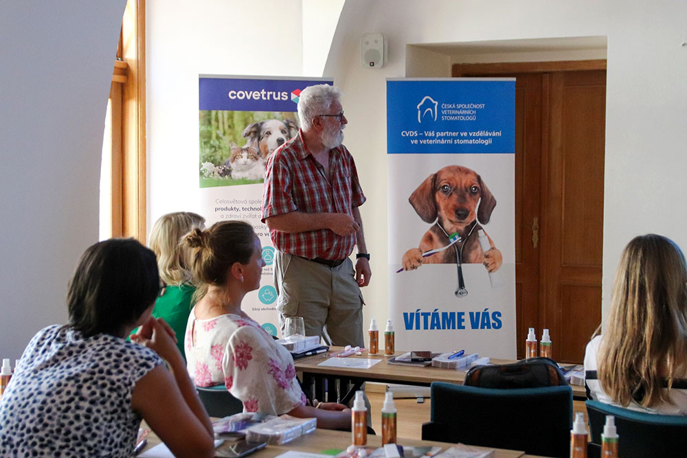Nosným tématem letošního setkání byly zajímavé klinické případy. Přednášející se etablovali z řad našich i zahraničních uznávaných odborníků. Kolega Juraj Hanzel nás dopodrobna seznámil s historií a vývojem zubního kazu. Bohužel v jeho přednášce o historii nezazněla ani drobná zmínka o historické stopě velké české mystické osobnosti Járy Cimrmana. Kolegyně Jana Václavíková nás detailně obeznámila s problematikou dentigerozní cysty. Ve druhé části nám odprezentovala zajímavý případ osteomyelitidy pandy červené. MVDr. Zbyněk Lonský zakládající člen CVDS a předseda sdružení obohatil naše setkání s klinickými případy chirurgického prořezávání retinovaných zubů u psů. Kolegyně Radka Zemánková svojí prezentací objasnila možnosti chirurgických zákroků na spodní čelisti při mandibulektomiích. V následující přednášce nám ukázal možnosti řešení bilaterální fraktury mandibulárních premolárů. Velice zajímavou byla komplexně pojatá prezentace kolegyně Martiny Ploškové, která se objasnila všechny aspekty řešení pardontitidy u geriatrických pacientů. Její multidisciplinární přístup detailně objasnil úskalí této problematiky, která je zajisté velkou výzvou pro každé stomatologické pracoviště. Neméně zajímavou byla prezentace kolegyně Eriky Langerové jenž nám seznámila s nejnovějšími poznatky odontodystrofie u malých zvířat. Hvězdná ikona veterinární stomatologie a hlavní přednášející Dr. Cedric Tutt ve své prezentaci nám představil estrádu svých pacientů, kteří vyžadují nejen rozsáhlé teoretické znalosti, ale personálně dostatečně kvalifikovaný a silný tým nejen psychicky, ale i fyzicky. Inu manipulace a ošetření lvů a tygrů vyžaduje minimálně 8 fyzicky zdatných pracovníků a dva operační stoly, neboť tito drobečci váží 200 kg a jejich manipulace vyžaduje ostražitost. Některé druhy vyžadují instrumentárium, se kterým by se určitě pochlubil každý umělecký kovář, neboť instrumentárium pro ošetření vpáčeného zubního klu marně budete hledat v katalogu světově proslulých firem věnující se zubařině a ani zkušený prodejce kutilských potřeb typu OBI, bude zajisté vyděšen při požadavku na nerezové dláto nebo škrabku v délce několika decimetrů. Nedovedu si představit jaké zděšení muselo zavládnout v zubní laboratoři při objednávce korunky pro mrože ze zoologické zahrady. Pro Cedrica je každý jeho pacient velkou výzvou a překvapením. Před jeho příjezdem jsou jeho budoucí pacienti podrobeni výcviku, aby byli svolní ke klinickému vyšetření. Proto Cedric nikdy nezapomene na své pacienty - delfíny. Společně se svými cvičiteli obohatili své cirkusové kousky nejen o vzornou prezentaci svého chrupu, ale i drobné zákroky v dutině ústní. Jejich smysl pro hru a humor zamířili proto na veterinární instrumentárium a s velkou radostí a pocitem vítěze, kdy Cedric nedával pozor, v nestřeženém okamžiku zcizili jakýkoliv nástroj a vítězoslavně s ním odpluli na druhý konec bazénu a položili ho na jeho dno. Po skončení vyšetření pak museli jejich cvičitelé prohledat každý koutek bazénu a nástroje vylovit.